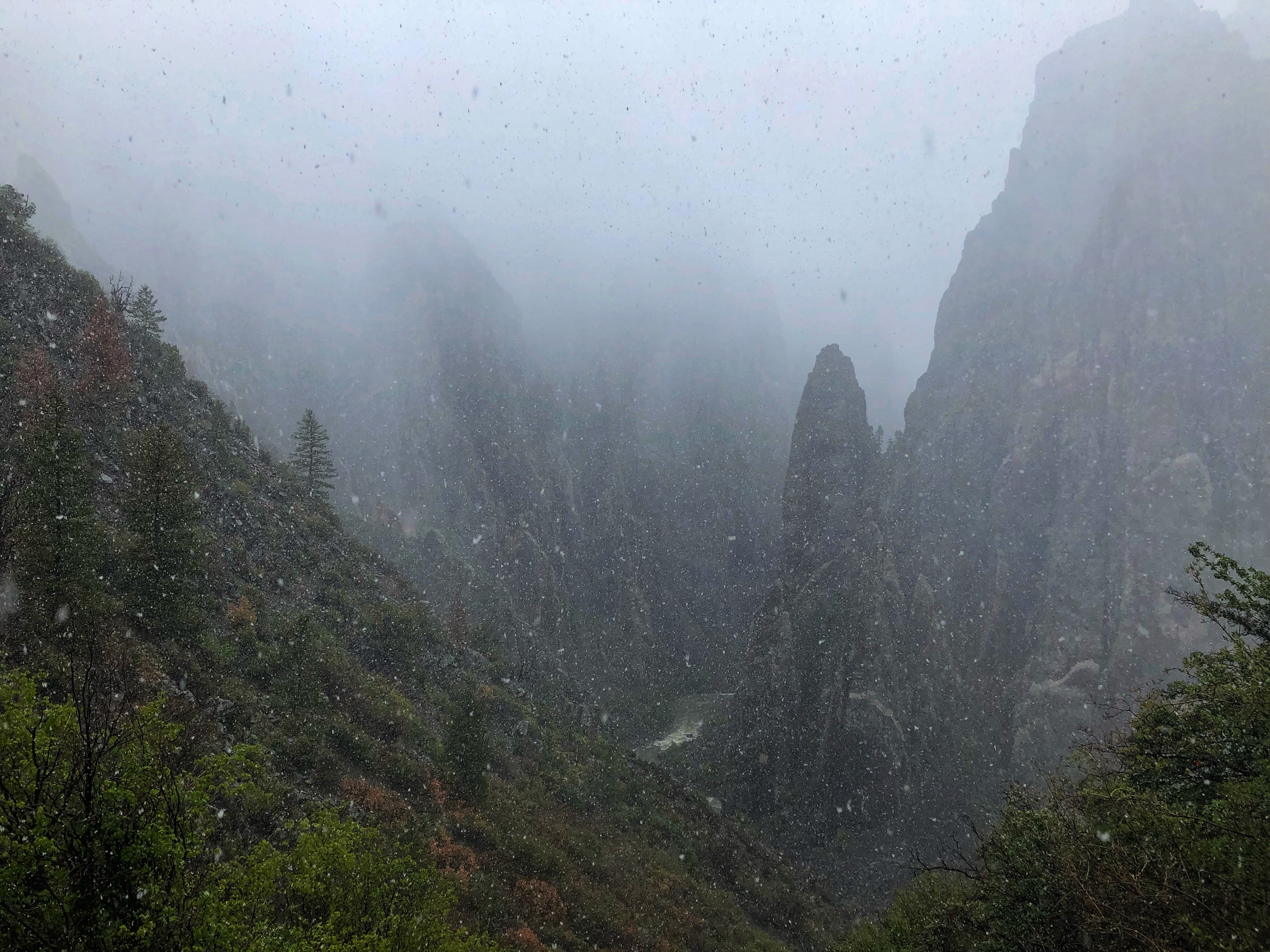 The hike itself is intense and one of only five official routes to the river. Most of it isn’t even a trail, so you just have to guess your way down a canyon wall and guess your way back up it. Due to the dangerous nature of these routes, you’re required to get a permit. Basically, this just helps the Park Rangers know if they need to look for you if they show up the next day and you still haven’t returned your permit. Needless to say, it was intense and one of the riskiest hikes I’ve done. What made it even more “adventurous” was the downpour of rain then a surprise snowstorm that made the ascent an adrenaline rush.